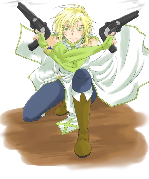 マイソロ3に新職業で二丁拳銃なガンナーが追加されるらしいのと、ヘリオルが銃器好きな設定だった筈なのにそういう絵がなかったので描いてみた。